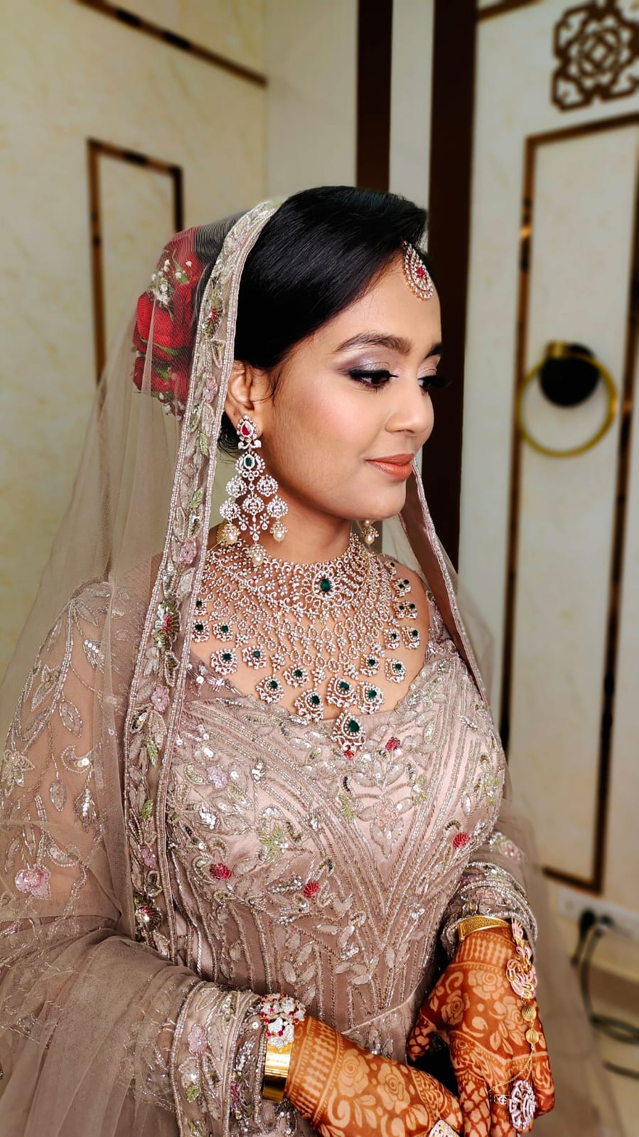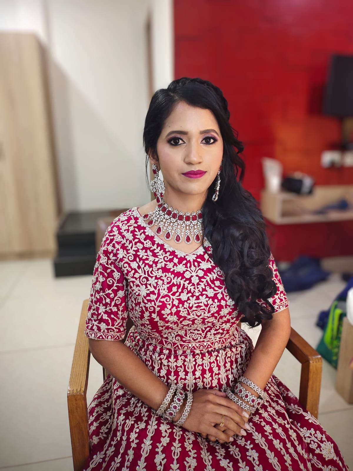 All the products that we use are by MAC Cosmetics. And huda beauty other top brands. The brushes are cleansed after every use, so you can be assured of the quality of my makeup and brushes! And hairstyles also ll make sure to give you the best In case you want a trial, it costs Rs.4000 . And trial is done in the salon .
