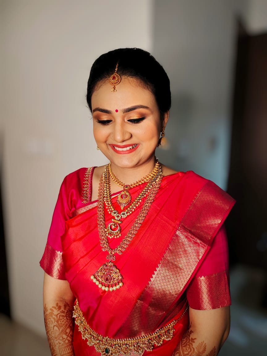 Bridal Package For each function in Chennai, my charges are Rs. 15,000 for the Bride per function.. My out of station charges are Rs. 20000. This includes Hair, Makeup and dress or 1 saree draping.